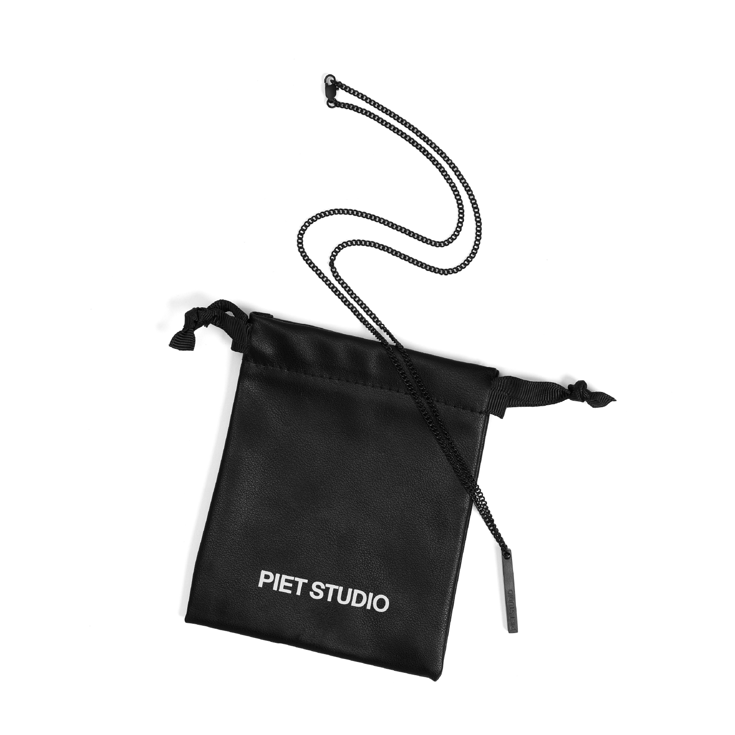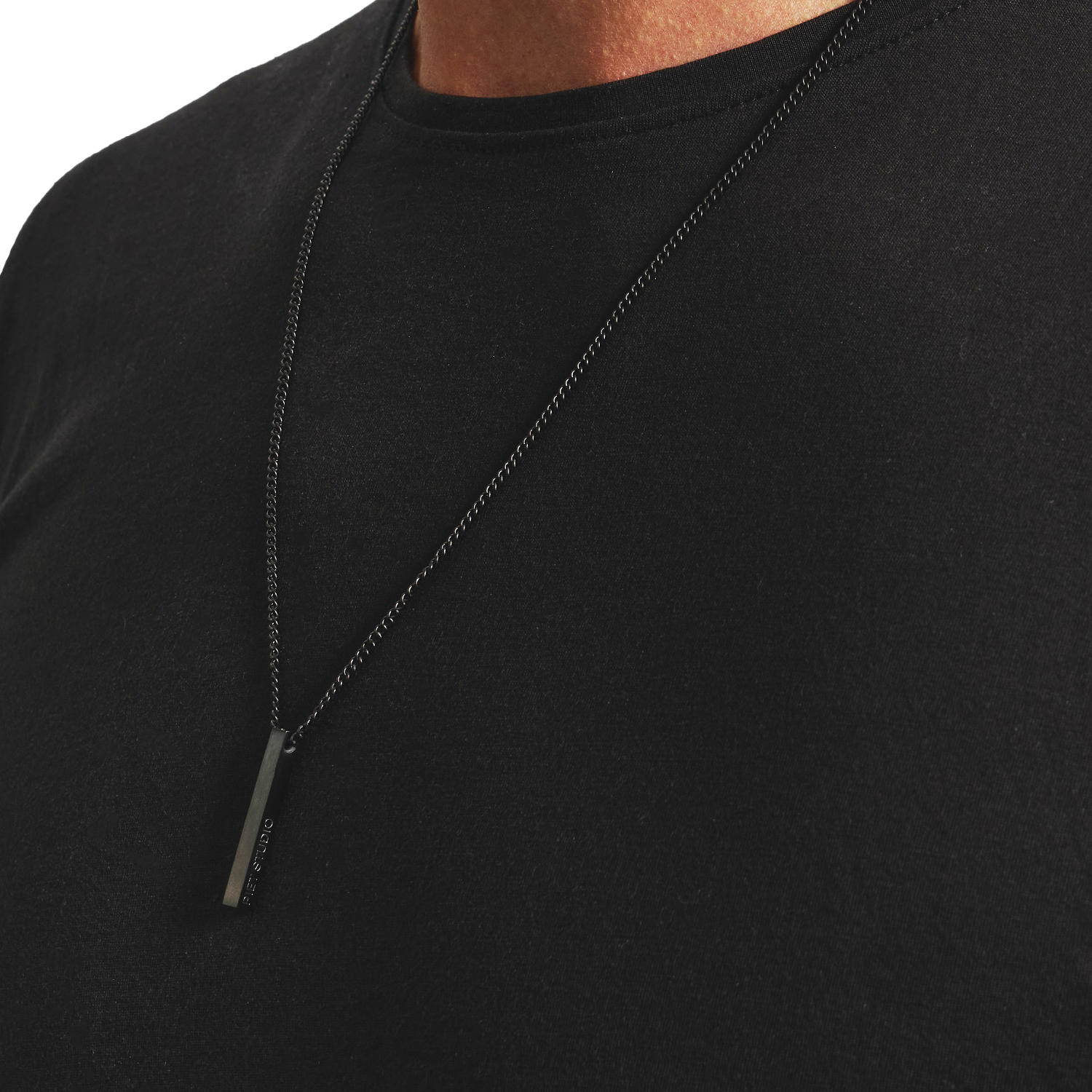 Collar de cadena fina con dije barra con logo de la marca PIET STUDIO.