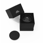 Incluye una tapa de madera con cierre de silicona para preservar su aroma entre usos. Viene presentada en una caja premium de papel de algodón negro, ideal para regalos especiales.