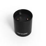 320 grs. de cera vegetal biodegradable presentada en un frasco de vidrio reutilizable con logo de PIET STUDIO estampado en blanco. Cuenta con dos pabilos de algodón para una combustión pareja.