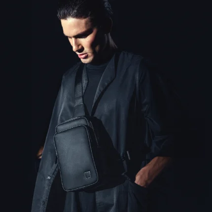 Bolso con forma baúl realizado en cuero vacuno graneado. Espacioso y práctico para viajes cortos. Manijas tubulares y acolchadas para llevar el bolso en la mano y correa de algodón ajustable y desmontable para llevarlo al hombro. Además tiene una manija adicional sobre una de sus tapas laterales. Cierres plásticos negros Bold Black. Interior completamente forrado en algodón con bolsillo de 16 cms con cierre.
